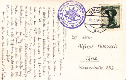 AK Schigebiet Radstädter Tauern. Seekarspitze. Gelaufen 1952. Kleinformat. Verlag: Ledermann. Nummeriert: 39577. Zustand: leichte Knicke.