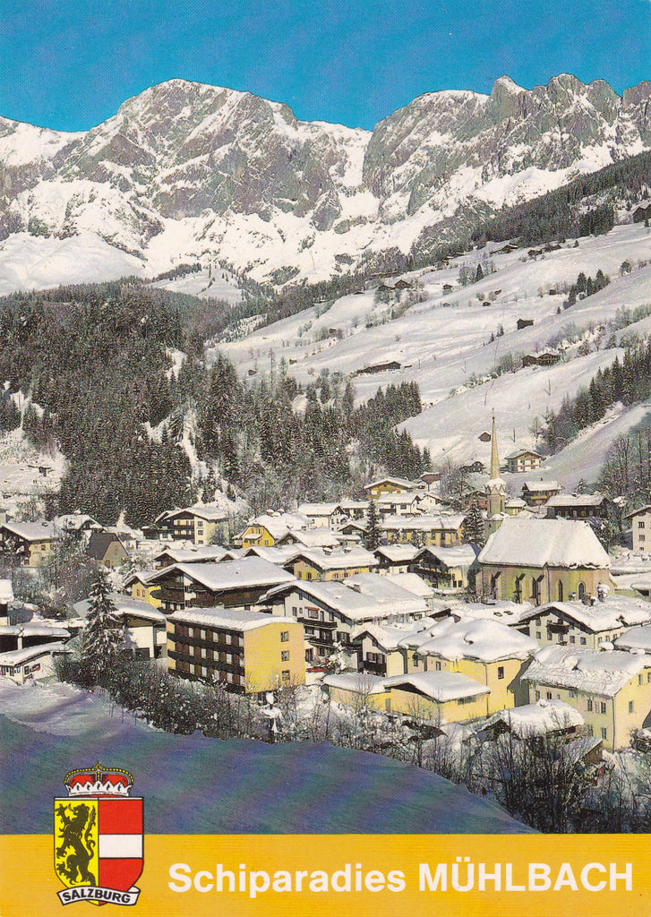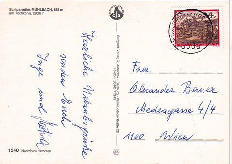 AK Schiparadies Mühlbach. Gelaufen. Großformat. Verlag: Juritschek. Nummeriert: 1540. Zustand: gut.