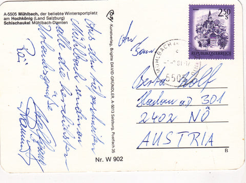 AK Skidorf Mühlbach am Hochkönig. Gelaufen. Großformat. Verlag: Cosy. Nummeriert: W 902. Zustand: gut.