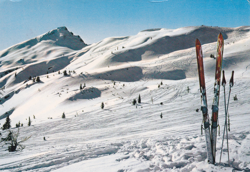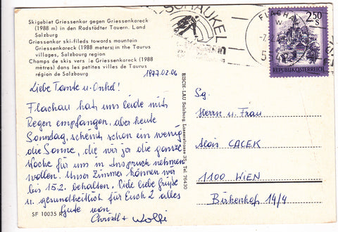 AK Skigebiet Griessenkar gegen Griessenkareck in den Radstädter Tauern. Gelaufen. Großformat. Verlag: Risch-Lau. Nummeriert: SF 10035 R. Zustand: rechte Ecken geknickt, sonst leichte Läsuren.
