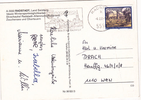 AK Skiparadies Radstadt. Gelaufen. Großformat. Verlag: Cosy. Nummeriert: W 6513. Zustand: gut, linkes oberes Eck wenig angeknickt.