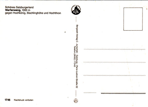 AK Werfenweng gegen Hochkönig, Bischlinghöhe und Hochthron. Ungelaufen. Großformat. Verlag: Jurischek. Nummeriert: 1746. Zustand: gut.