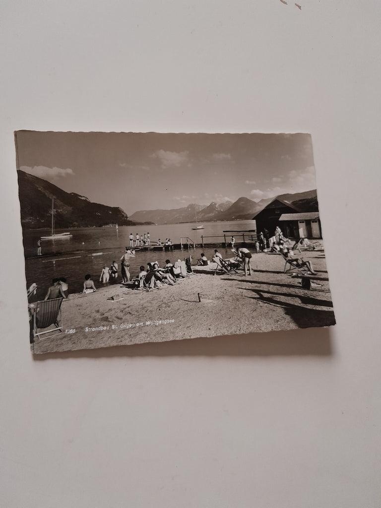 AK St. Gilgen am Wolfgangsee. Strandbad. Gelaufen, aber Briefmarke wurde entfernt. Großformat. Verlag: Rhomberg. Nummeriert: 7388. Zustand: gut.