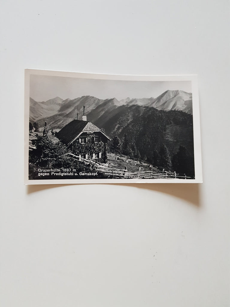 AK Grazerhütte gegen Predigtstuhl u. Gamskopf. (1961) Gelaufen. Kleinformat. Verlag: Ledermann. Zustand: gut.