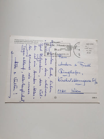 AK Ein Gruss aus Bad Hofgastein Schlossalm. Gelaufen, aber Briefnmarke wurde entfernt. Großformat. Verlag: Alpine Luftbild. Nummeriert: 2098 A. Zustand: linkes oberes Eck geknickt.