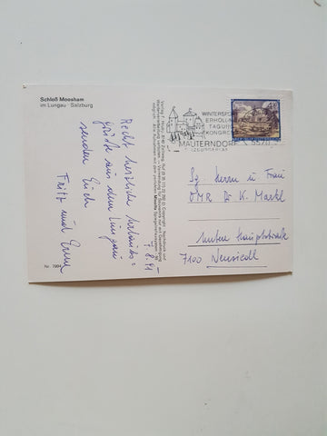 AK Schloß Moosham. (1989) Gelaufen. Großformat. Verlag: Hruby. Nummeriert: 7994. Zustand: gut, linkes oberes Eck geknickt.