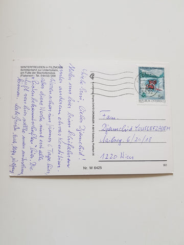 AK Winterfreunden in Filzmoos. Schlittenfahrt zur Unterhofalm. Gelaufen. Großformat. Verlag: Cosy. Nummeriert: 6425. Zustand: gut.