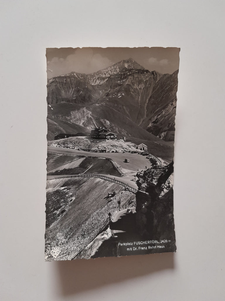 AK Parkplatz Fuschertörl mit Dr. Franz Rehrl Haus. Gelaufen. Kleinformat. Verlag: Cosy. Nummeriert: 1135. Zustand: linkes unteres Eck geknickt.