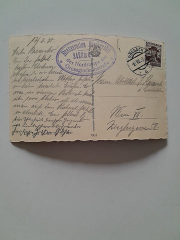 AK Grossglockner Hochalpenstrasse. Fuschertörlkopf, Edelweisspitze und Berghaus Lukashansl. (1935)