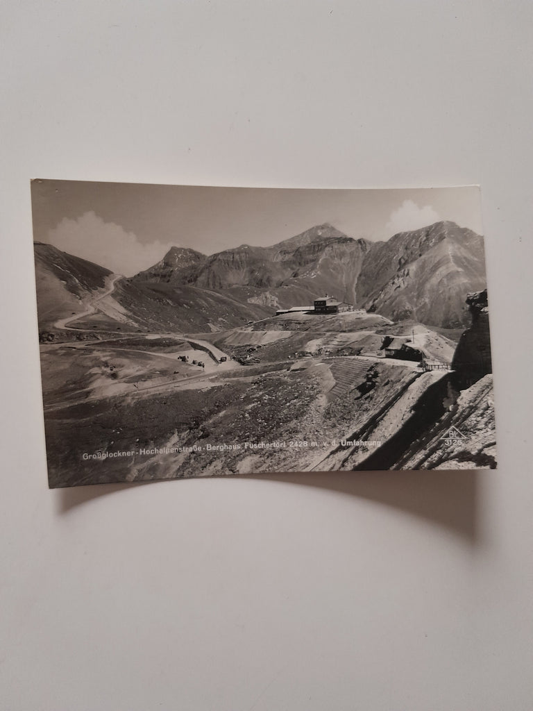 AK Großglockner Hochalpenstraße Berghaus Fuschertörl. v. d. Unfahrung. (1936) Gelaufen, aber Briefmarke wurde entfernt. Kleinformat. Verlag: Lenz. Nummeriert: 3126. Zustand: gut.