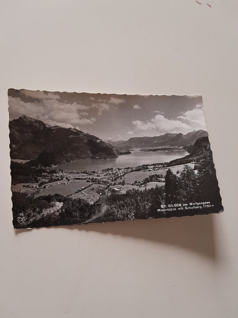 AK St. Gilgen am Wolfgangsee. Mozartblick mit Schafberg. Gelaufen. Kleinformat. Verlag: Cosy. Nummeriert: 75. Zustand: gut.