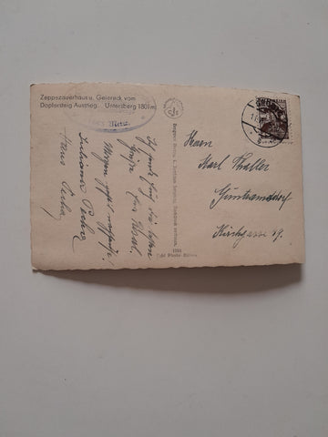 AK Zeppezauerhaus u. Geiereck vom Dopplersteig Ausstieg. Untersberg. (1934) Gelaufen. Kleinformat. Verlag: Jurischek. Zustand: gut.
