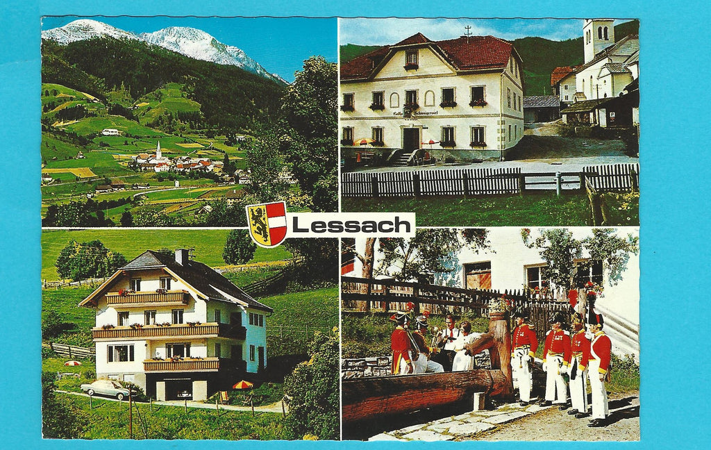 AK Lessach. Gasthof Schwaigerwirt und Pension Johannes. Gelaufen. Großformat. Verlag: Hruby. Nummeriert: 5999. Zustand: gut, linkes unteres Eck geknickt.