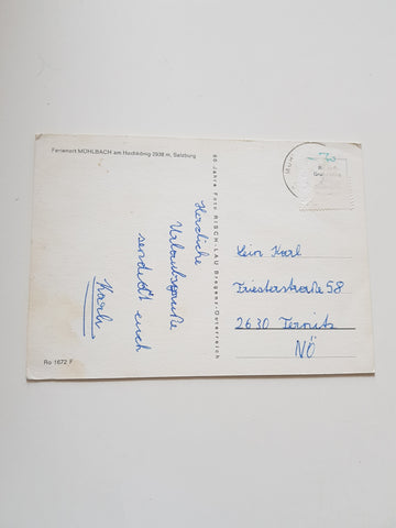 AK Mühlbach am Hochkönig. Gelaufen, aber Briefmarke wurde entfernt. Großformat. Verlag: Risch-Lau. Nummeriert: 1672 F. Zustand: Ecken und am linken Rand geknickt.