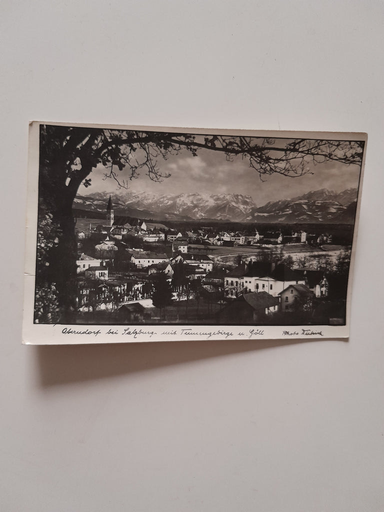 AK Oberndorf bei Salzburg mit Tennengebirge und Göll. Gelaufen. Kleinformat. Verlag: Dietrich. Zustand: stärker bestoßen.