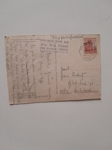 AK Alpenhotel Zistelalm am Gaisberg. Gelaufen. Großformat. Verlag: MM. Nummeriert: 4. Zustand: stark bestoßen.