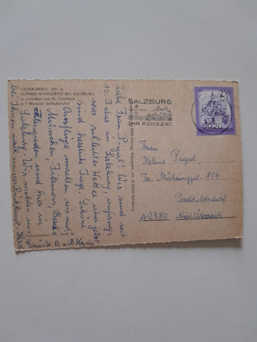 AK Untersberg. Alpines Schigebiet bei Salzburg. Gelaufen. Großformat. Verlag: MM. Nummeriert: FUN 56. Zustand: linkes oberes und rechtes unteres Eck geknickt.