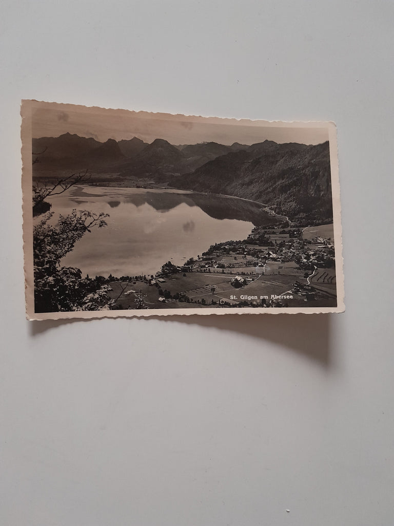 AK St. Gilgen am Abersee. Gelaufen, aber Briefmarke wurde entfernt. Kleinformat. Verlag: Jurischek. Nummeriert: 20081. Zustand: fleckig, linkes oberes Eck geknickt.