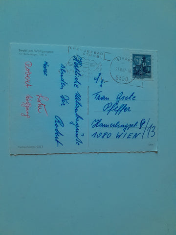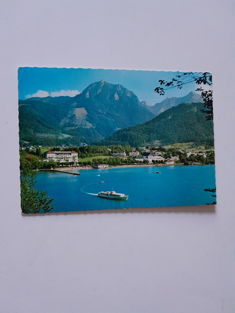 AK Strobl am Wolfgangsee. Gelaufen. Großformat. Verlag: Montana. Nummeriert: 2. Zustand: linke Ecken geknickt, Büroklammerabdruck am oberen Rand.