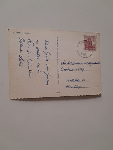 AK Mattsee. Gelaufen. Großformat. Verlag: Kiesel. Nummeriert: 60-3. Zustand: gut, linkes unteres Eck angeknickt.