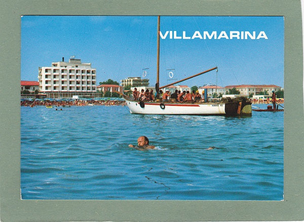 AK Villamarina di Cesenatico. Alberghi e spiaggia visti dal mare. Ungelaufen. Großformat. PAVICART. Zustand: gut, Ecken leicht angestoßen.