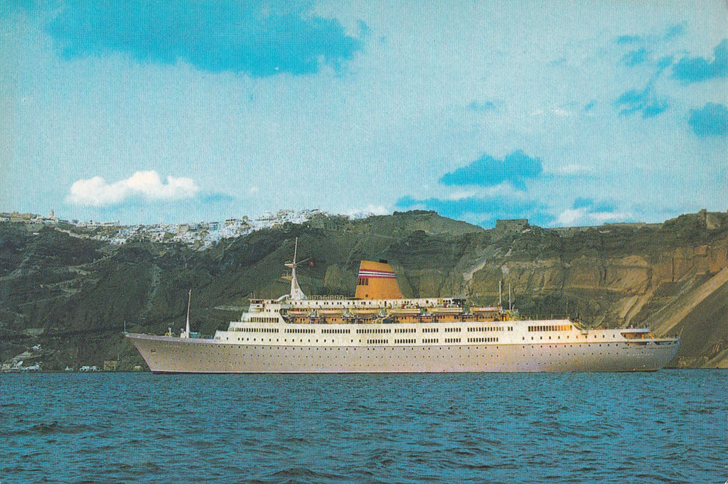 AK Norwegian America Line M/S Vistafjord in the Mediterranean (Thira) Ungelaufen. Großformat. Zustand: gut.