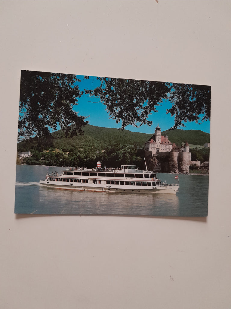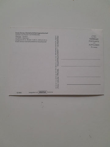 AK Schloß und Kloster Schönbühel. MFS Wachau. Erste Donau-Dampfschiffhartsgesellschaft. Ungelaufen. Großformat. Verlag: Fenz. Nummeriert: 12043. Zustand: gut, linkes oberes Eck geknickt.