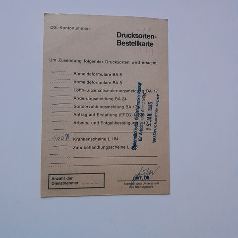 Drucksortenbestellkarte Absender: Fliegerhorstbataillon 2 Fliegerhorst Nittner Graz Thalerhof an Steierm. Gebietskrankenkasse. Zustand: gut.
