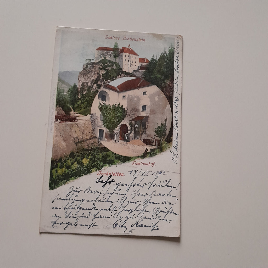 AK Frohnleiten. Schlosshof. Schloss Rabenstein. Gelaufen. Kleinformat. Verlag: Höfler bzw. Purger & Co. Nummeriert: 1418. Zustand: gut, leicht bestoßen.