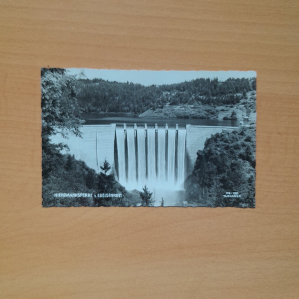 AK Hierzmannsperre b. Edelschrott. Gelaufen. Kleinformat. Verlag: Kramer. Nummeriert: 119-102. Zustand: gut, rechtes unteres Eck geknickt.