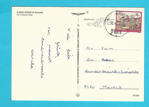 AK Aigen im Ennstal. Gelaufen. Großformat. Verlag: Alpine Luftbild. Nummeriert: 78830. Zustand: gut, rechts der Bildmitte Kugelschreiberkreis.