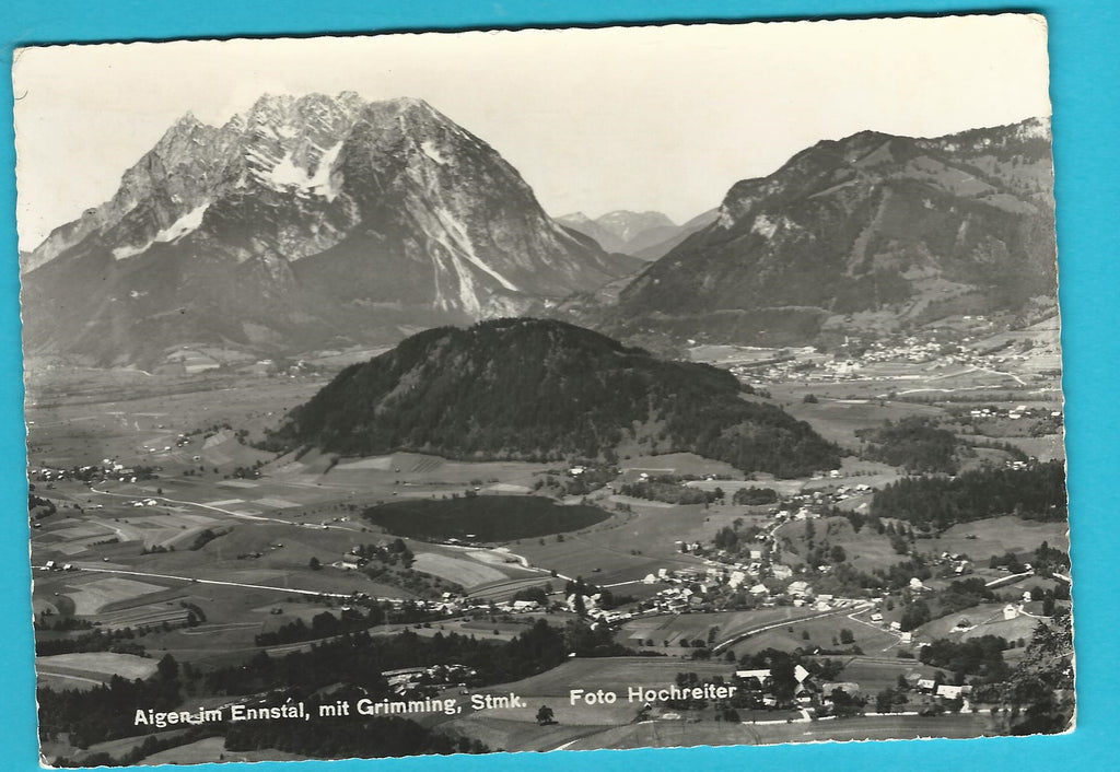 AK Aigen im Ennstal mit Grimming. Gelaufen. Großformat. Verlag: Hochreiter. Zustand: gut.