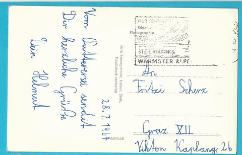 AK Aigen im Ennstal mit Putterersee u. Grimming. Gelaufen, aber Briefmarke wurde entfernt. Kleinformat. Verlag: Baumgartner. Zustand: berieben.