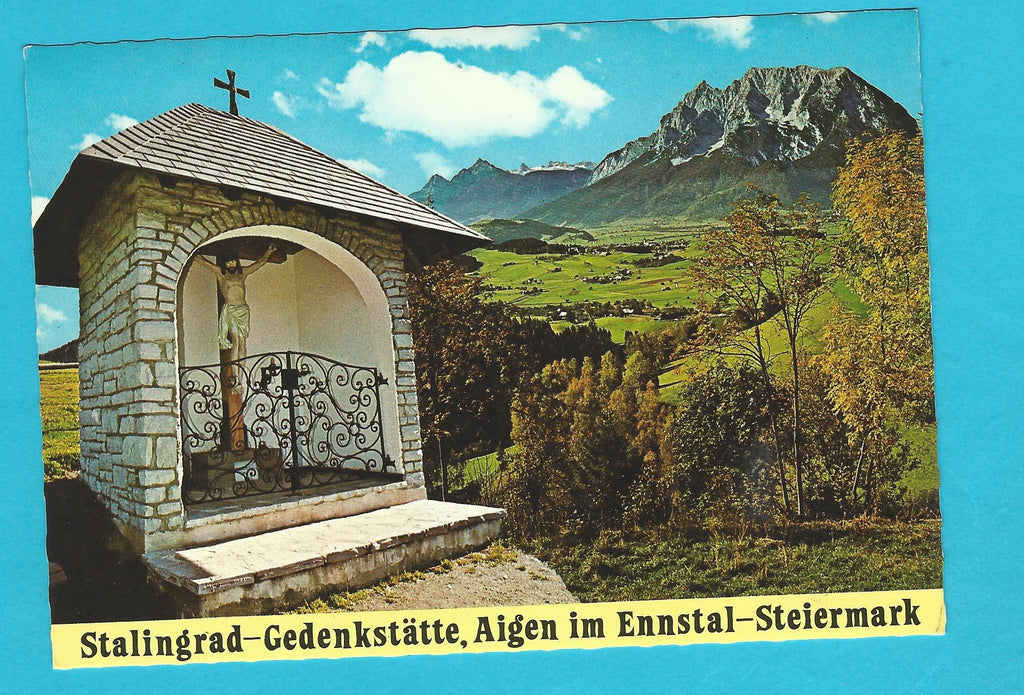 AK Aigen im Ennstal. Stalingrad - Gedenkstätte. Gelaufen. Großformat. Verlag: Cosy. Nummeriert: 10349. Zustand: gut.