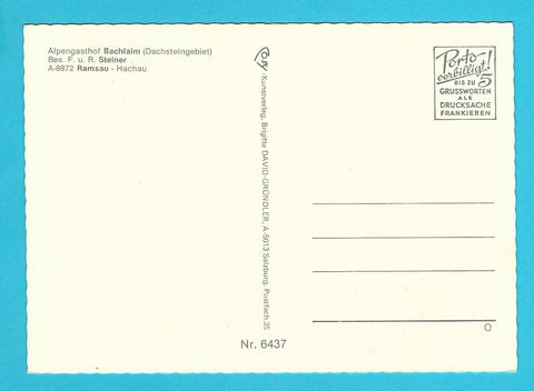AK Alpengasthof Bachlalm. Bes. F. u. R. Steiner. Ungelaufen. Großformat. Verlag: Cosy. Nummeriert: 6437. Zustand: gut.
