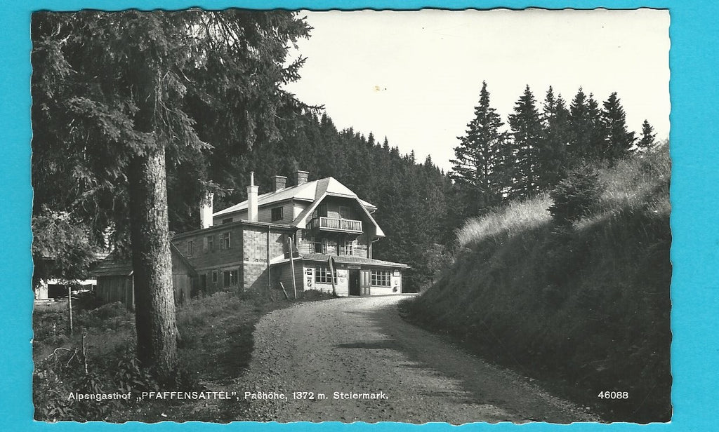 AK Alpengasthof Pfaffensattel. Passhöhe. Gelaufen. Kleinformat. Verlag: Ledermann. Nummeriert: 46088. Zustand: gut.