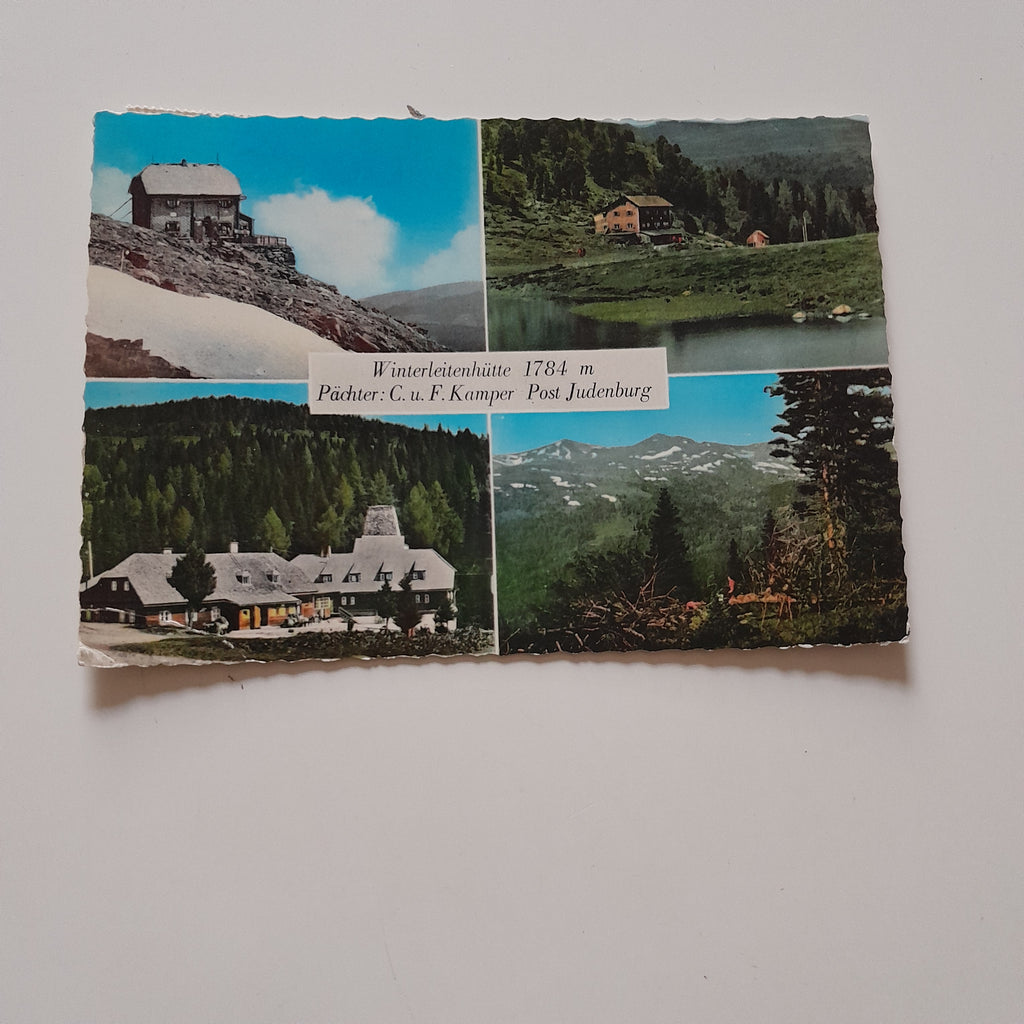 AK Winterleitenhütte. Pächter: C. u. F. Kamper. Judenburg. Gelaufen. Großformat. Verlag: Glantschnigg. Nummeriert: 159-16-4. Zustand: gut, untere Ecken geknickt.
