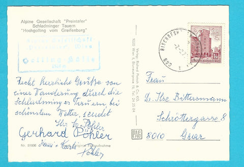 AK Alpine Gesellschaft Preintaler. Schladminger Tauern. Hochgolling vom Greifenberg. Gelaufen. Großformat. Verlag: Pietsch. Nummeriert: 81936. Zustand: gut.