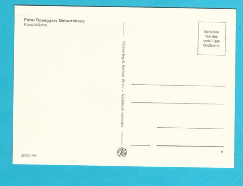 AK Alpl. Peter Roseggers Geburtshaus. Rauchküche. Ungelaufen. Großformat. Verlag: Kellner Nummeriert: 3572/1 FW. Zustand: gut.
