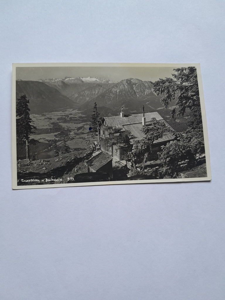 AK Loserhütte mit Dachstein. Gelaufen. Kleinformat. Verlag: Kain. Zustand: gut, rechtes oberes Eck geknickt.