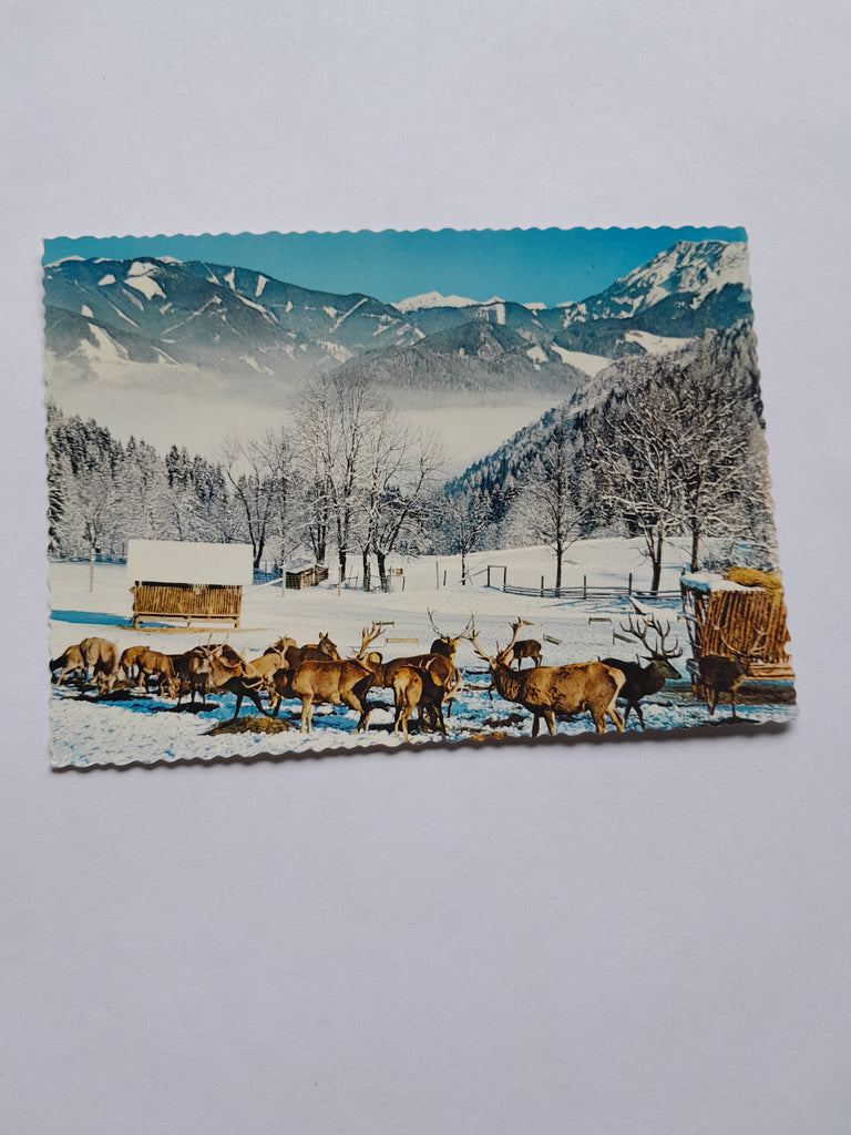 AK Rotwildfütterung. Gelaufen. Großformat. Verlag: Rastl. Nummeriert: 53. Zustand: gut.