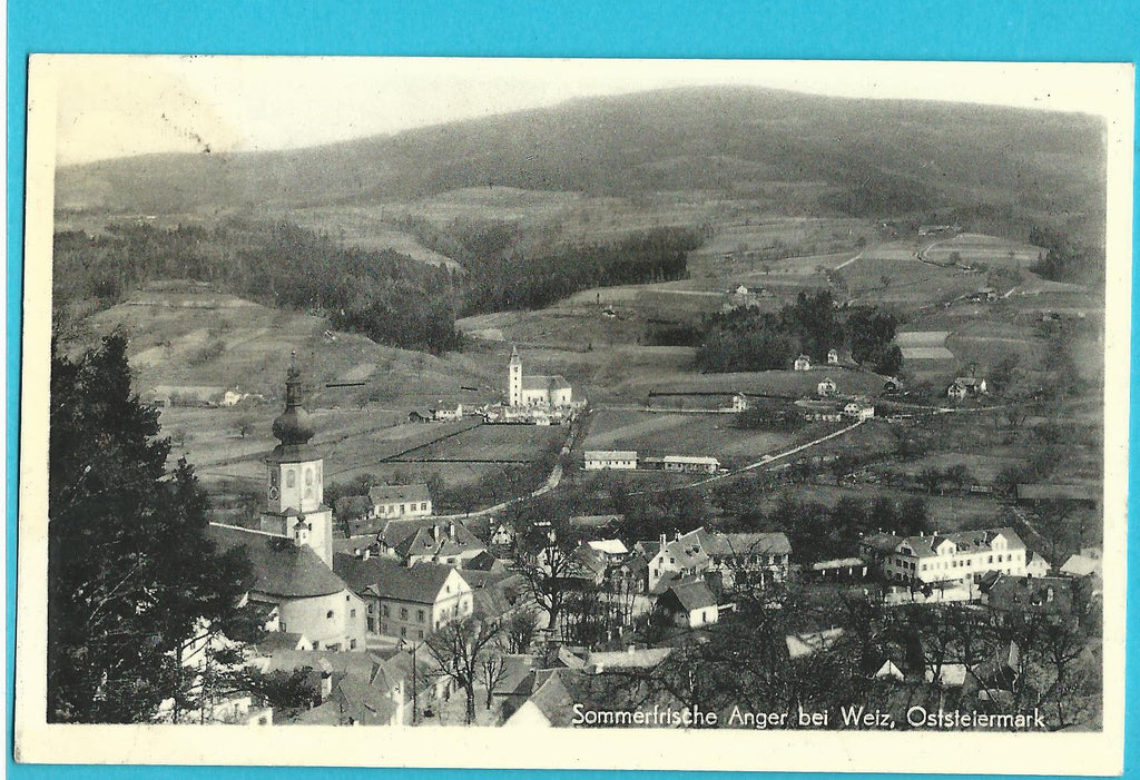 AK Anger bei Weiz. Gelaufen, aber Briefmarke wurde entfernt. Kleinformat. Verlag: Mörtl. Nummeriert: 9986. Zustand: stärker bestoßen.