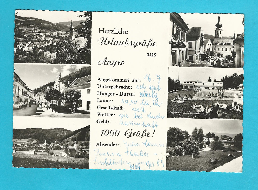 AK Anger. Herzliche Urlaubsgrüße aus Anger. 1000 Grüße. Gelaufen. Großformat. Verlag: Weghofer. Zustand: gut.