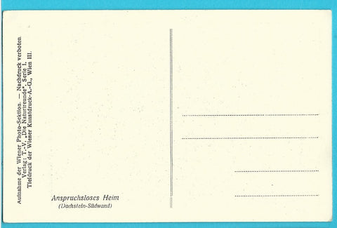 AK Anspruchsloses Heim. (Dachstein Südwand). (K. Hirschbeck) Ungelaufen. Kleinformat. Verlag: Aufnahme der Wiener Photo-Sektion. Verlag: T.-V. Die Naturfreunde. Zustand: gut, rechtes unteres Eck geknickt.