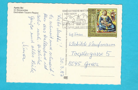 AK Apres Ski im Skiparadies Dachstein-Tauern-Region. Gelaufen. Großformat. Verlag: Deller. Zustand: rechtes unteres Eck mehrfach geknickt.