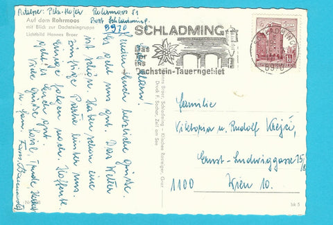 AK Auf dem Rohrmoos mit Blick zur Dachsteingruppe. Gelaufen. Großformat. Verlag: Broer. Nummeriert: 128. Zustand: gut.
