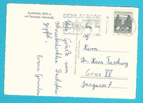 AK Austriahütte. Gelaufen. Großformat. Verlag: Westmüller. Zustand: gut, linkes unteres Eck geknickt.