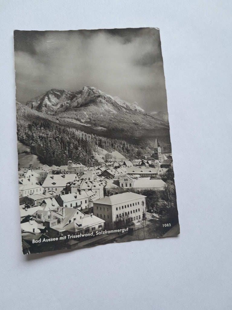 AK Bad Aussee mit Trisselwand. Gelaufen, aber Briefmarke wurde entfernt. Großformat. Verlag: Rastl. Nummeriert: 1083. Zustand: leicht bestoßen.