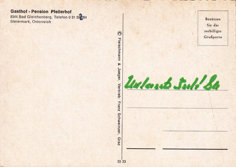 AK Bad Gleichenberg. Gasthof Pension Pfeilerhof. Ungelaufen. Großformat. Verlag: Fleischmann & Jäger. Nummeriert: St 33. Zustand: gut.