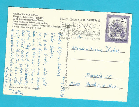 AK Bad Gleichenberg. Gasthof Pension Scheer. Haag 15. Gelaufen. Großformat. Verlag: Remling. Nummeriert: 114. Zustand: Ecken angeknickt.